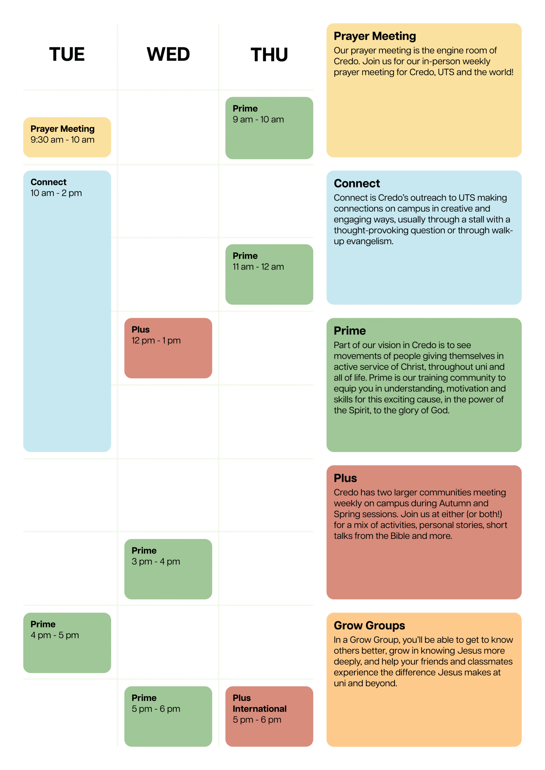 Our prayer meeting is the engine room of Credo. Join us for our in-person weekly prayer meeting for Credo, UTS and the world!